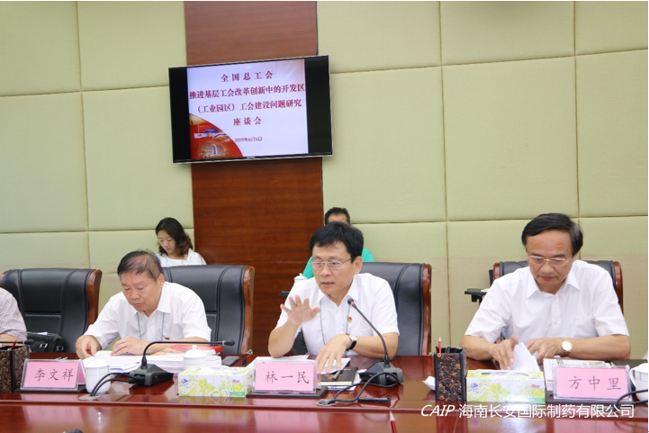 6月5日,全國總工會副主席、書記處書記蔡振華一行5人到??趪腋咝聟^就“推進基層工會改革創新中的開發區(工業園區)工會建設問題研究”主題開展專題調研。省總工會黨組書記、常務副主席王全,市人大常委會黨組副書記、副主任,市總工會黨組書記、主席方中里,高新區管委會主任林一民等陪同。在高新區工會的推薦下,海南長安國際制藥有限公司作為企業代表出席本次調研會議。
