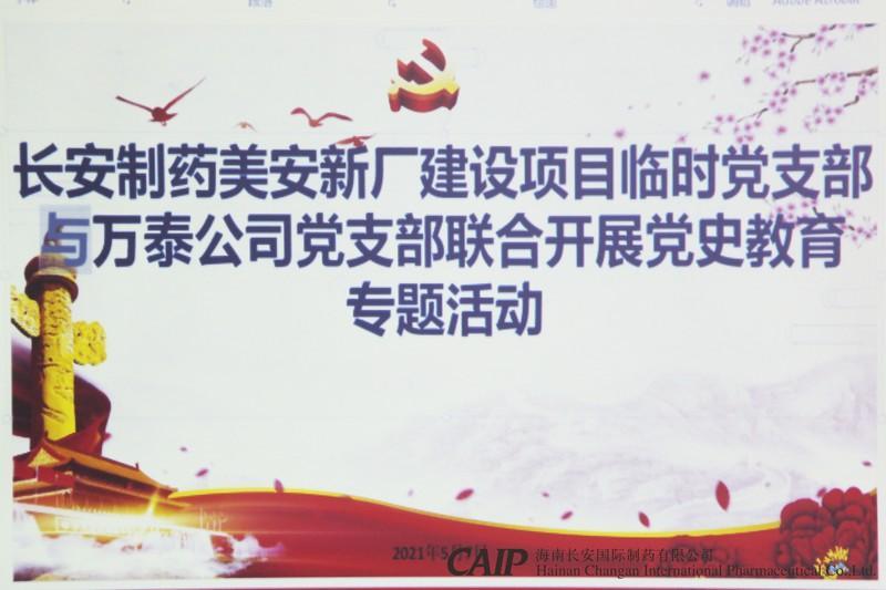 為了扎實開展黨史學(xué)習(xí)教育活動,感悟共產(chǎn)黨人奮斗歷程中直面艱難險阻的不屈精神,進(jìn)一步加強黨員干部的黨性修養(yǎng)和理想信念,5月7日,長安制藥美安科技新城新廠建設(shè)項目臨時黨支部與萬泰公司黨支部在長安制藥美安科技新城新廠建設(shè)項目會議室聯(lián)合開展了黨史教育專題活動,教育引導(dǎo)黨員干部學(xué)黨史、悟思想、辦實事、開新局。