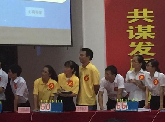 經過三個月的初賽、復賽迎來了今天的決賽,生產企業無菌組決賽共分為三個環節:必答題,搶答題,風險題。在決賽的現場,我們參賽選手反應迅速,密切配合,展現豐富的知識,秀出了我們的風采。我們公司啦啦隊穿著統一服裝來到現場為我們的選手吶喊、助威!并秀出我們公司的口號“秀出自信,展現自我,非比尋常,長安最強”。