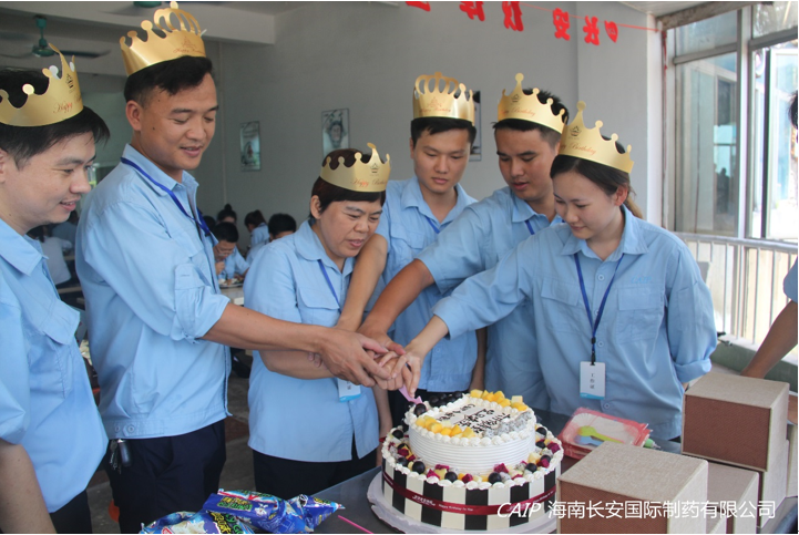 正直炎炎烈日的六月,在陽光生機盎然,碧波天藍的季節,長安制藥又迎來的本月度的員工生日會,蛋糕映襯了仲夏的繽紛,氣球裝飾了青春的多彩,蠟燭點亮了長安的祝福。